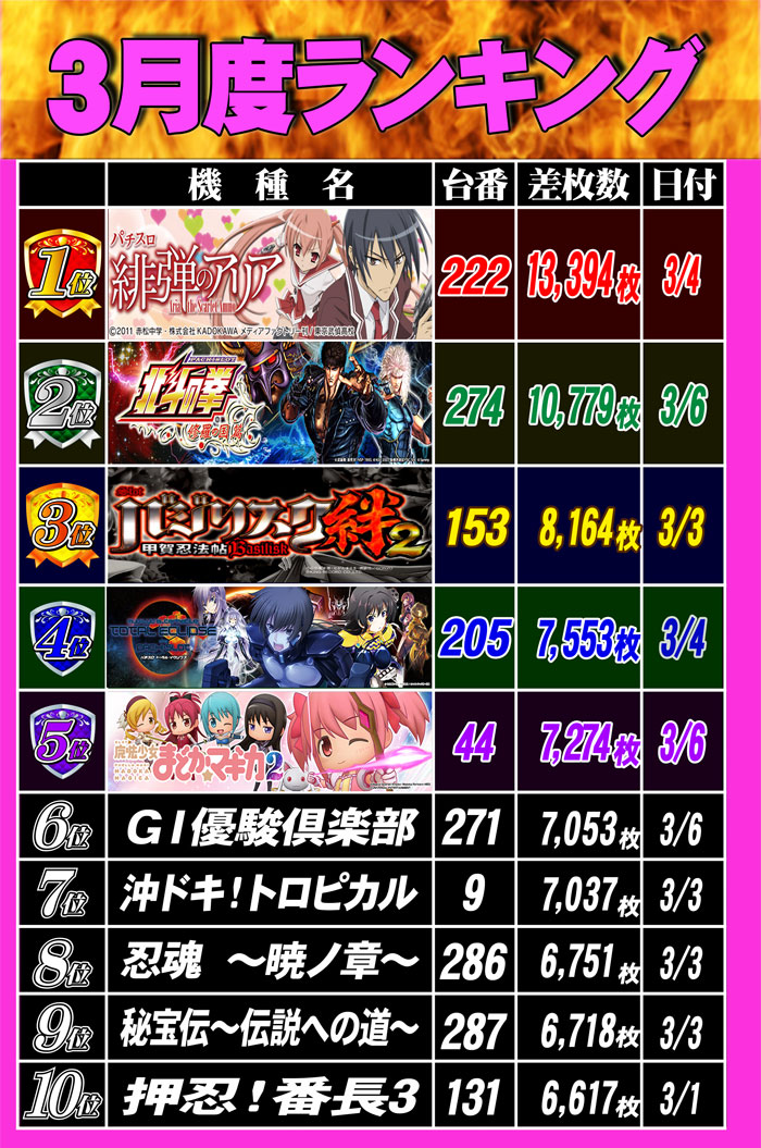 2021.3.7  出玉ランキング更新   CLUB-Dなんば