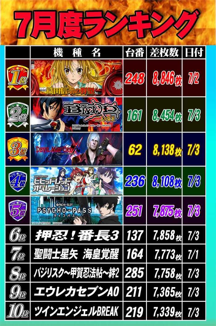 2021.7.4  出玉ランキング更新   CLUB-Dなんば