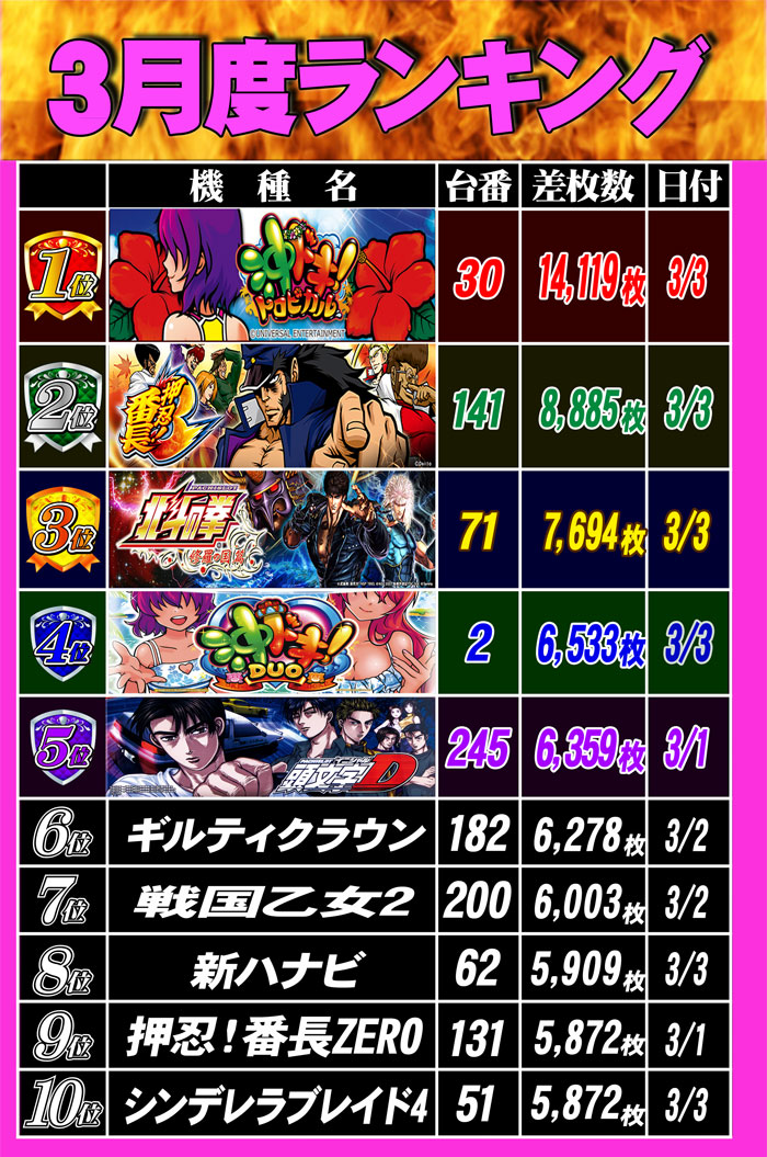 2022.3.4  出玉ランキング更新   CLUB-Dなんば